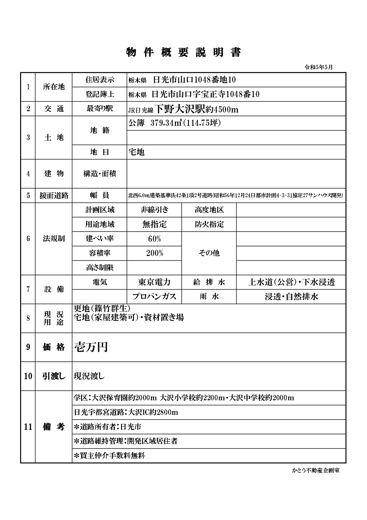 日光市 114坪(宅地) 価格壱万円 買主仲介手数料不要 2023年6月3日 ポスト シェア はてブ 送る Pocket ✽資産処分のため低廉価格でお譲りします(価格壱万円) ✽買主仲介手数料不要 日光市 宅地(資材置き場等)114.75坪 篠竹群生 幅員6m 物件北側 ← 戻るご回答をありがとうございました。 ✨ 名前(必須) メール(必須) サイト メッセージ 送信 Δ 関連